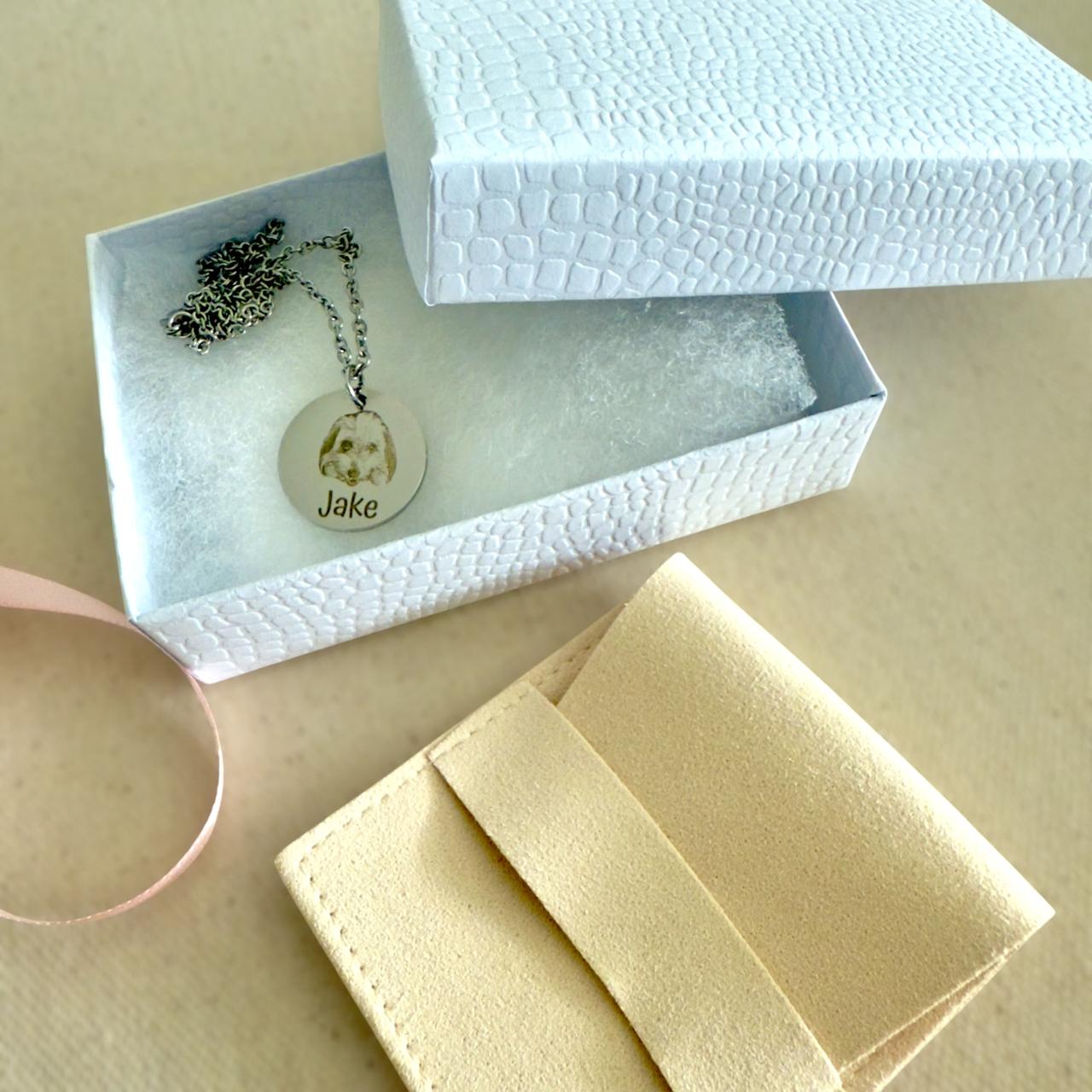 Custom Pet Portrait Necklace – Round Pendant with Name